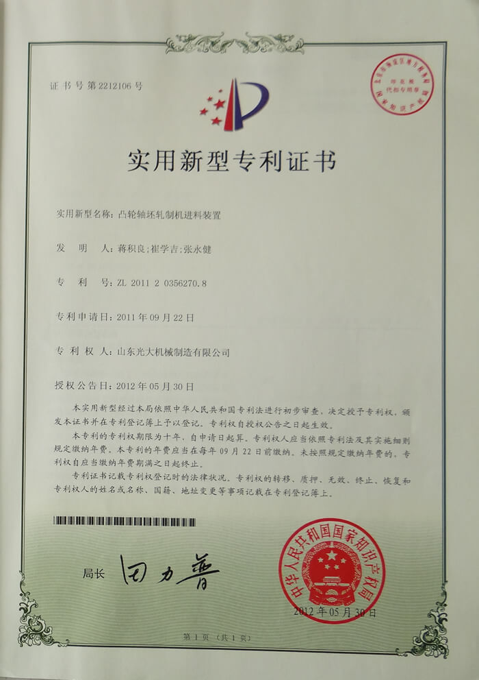 Feeding device of cam shaft blank rolling machine - utility model patent certifi