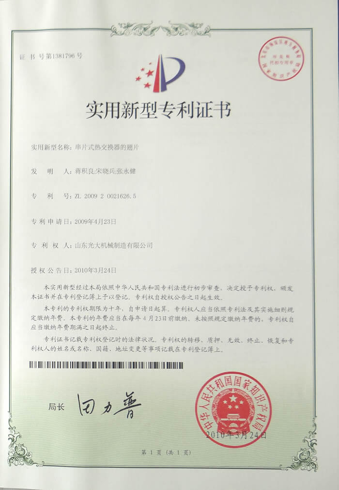 Fin and tube utility model patent certificate for a series of fin heat exchanger